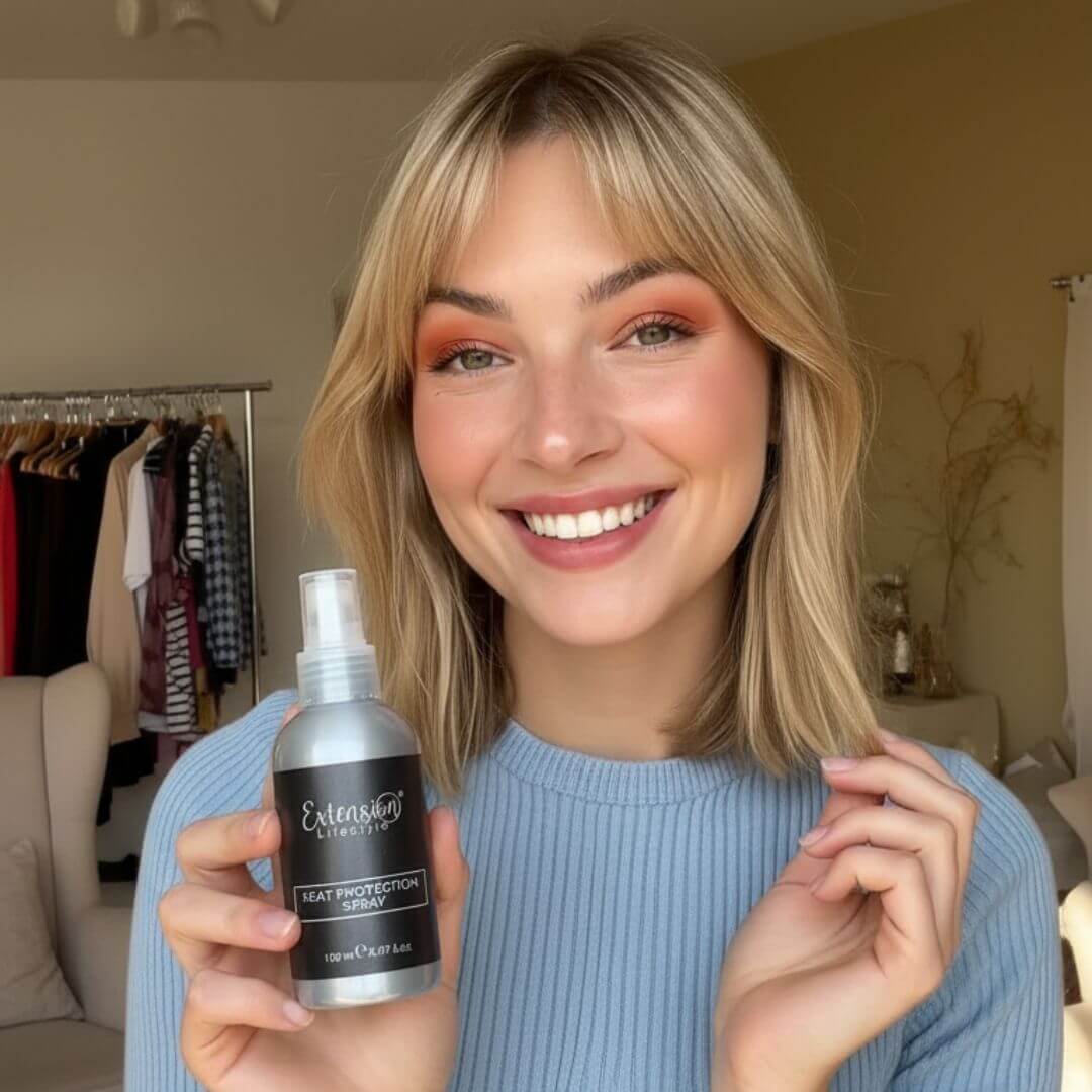 Il termoprotettore professionale è uno spray leggero e invisibile studiato per proteggere le extension e i capelli naturali dal calore di phon, piastra e arricciacapelli. La sua formula termoattiva crea una barriera protettiva fino a 230°C, difendendo la fibra capillare da secchezza, rotture e opacità, e mantenendo i capelli morbidi e luminosi.